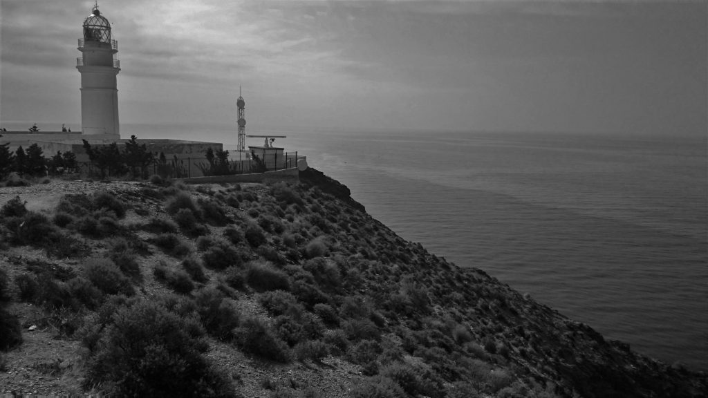 Un poco más adelante llegamos al Faro de Sacratif. Para acceder a él debemos tomar el arcén de la carretera sin cruzar. Aunque el arcén es bastante ancho no es recomendable este tramos para niños sin adultos. En unos minutos encontramos la subida al faro y sus entorno.