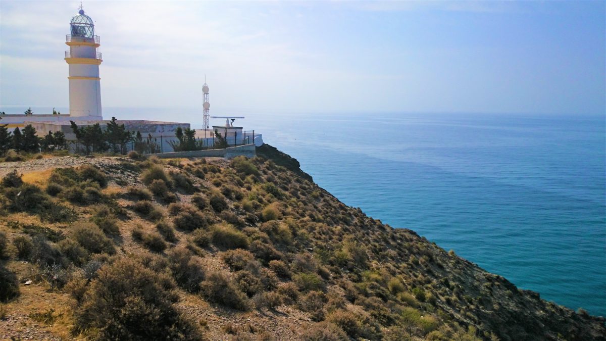 Al final del paseo marítimo se toma la calle que arranca a la derecha y que pronto se volverá camino de tierra, no sin antes subir una pequeña escalinata a la derecha para contemplar la bahía desde el mirador del Peñon de Jolúcar. Volvemos a bajar y continuamos en la dirección prevista. Al poco de pisar tierra encontrarás una senda estrecha a la derecha que debemos tomar par subir al sendero junto a las señales o hitos de deslinde marítimo.
